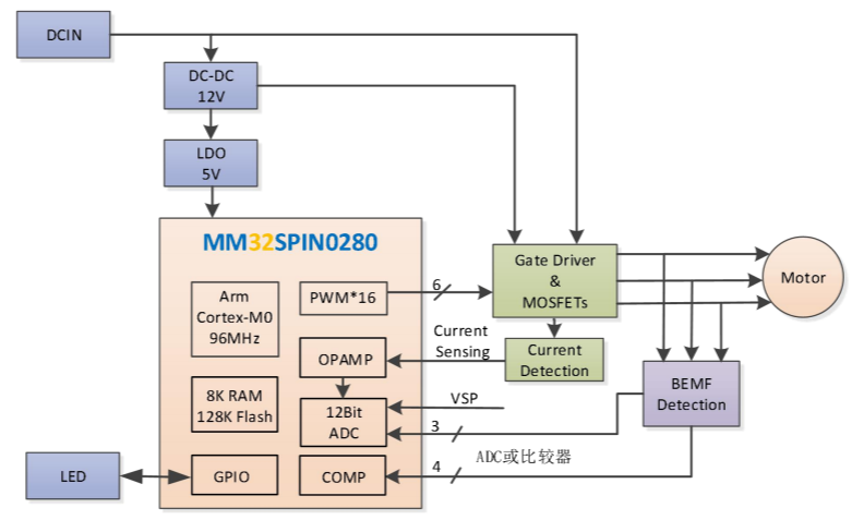 靈動微電子MM32SPIN0280無感方波BLDC電動工具硬件參考設計