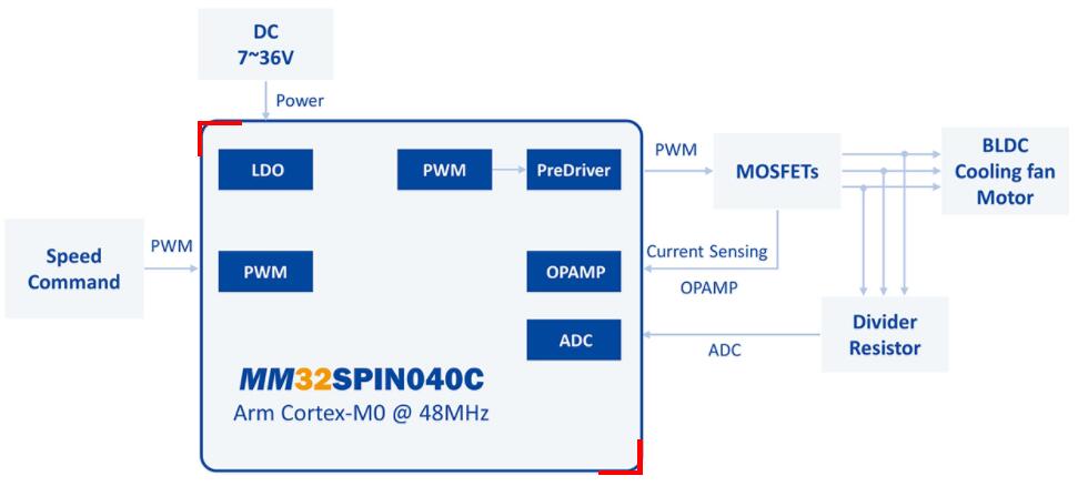 MM32SPIN040C,用于服務(wù)器風(fēng)扇。