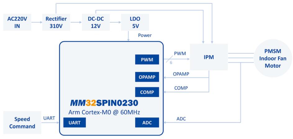 低成本32位單片機(jī)MM32SPIN0230空調(diào)內(nèi)風(fēng)機(jī)方案