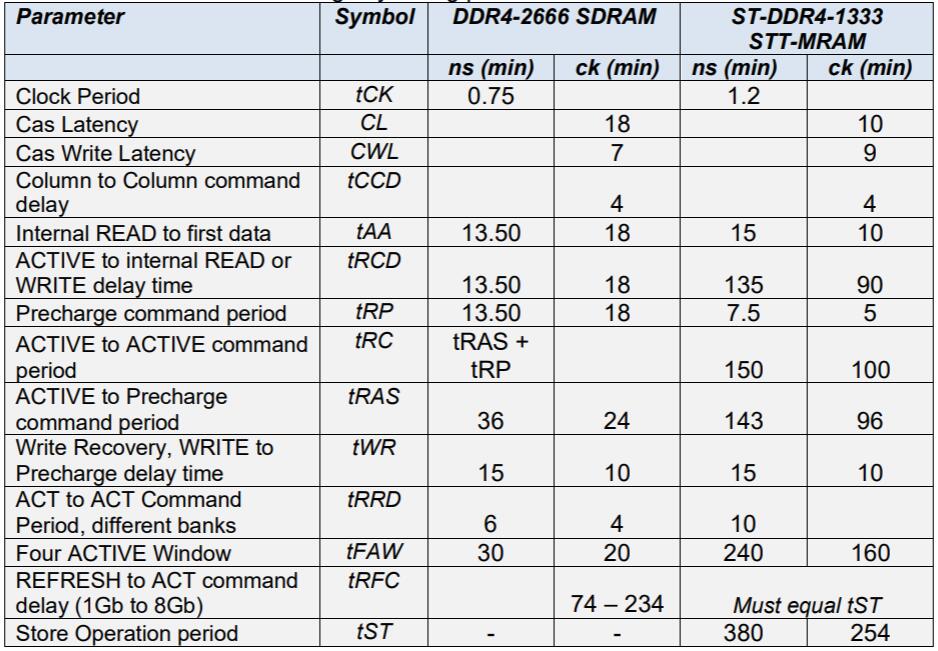 該表顯示了DDR4和ST-DDR4的關(guān)鍵時(shí)序參數(shù)
