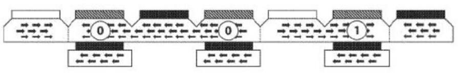 為了寫入單個位,電流通過存儲線,并且多鐵性元件和自由層的相互作用確定層之間的反平行極性為“ 1”(高電阻),層之間的平行極性為“ 0” (低電阻)。然后,通過減小存儲線和多鐵性元件之間的交換偏壓來更改存儲域的磁化強度(請參見上圖)。存儲器域是可獨立寫的,只需要一個電流輸入即可存儲數(shù)據(jù)。這大大降低了能耗和寫入周期所需的時間,從而提高了成本和性能效率。