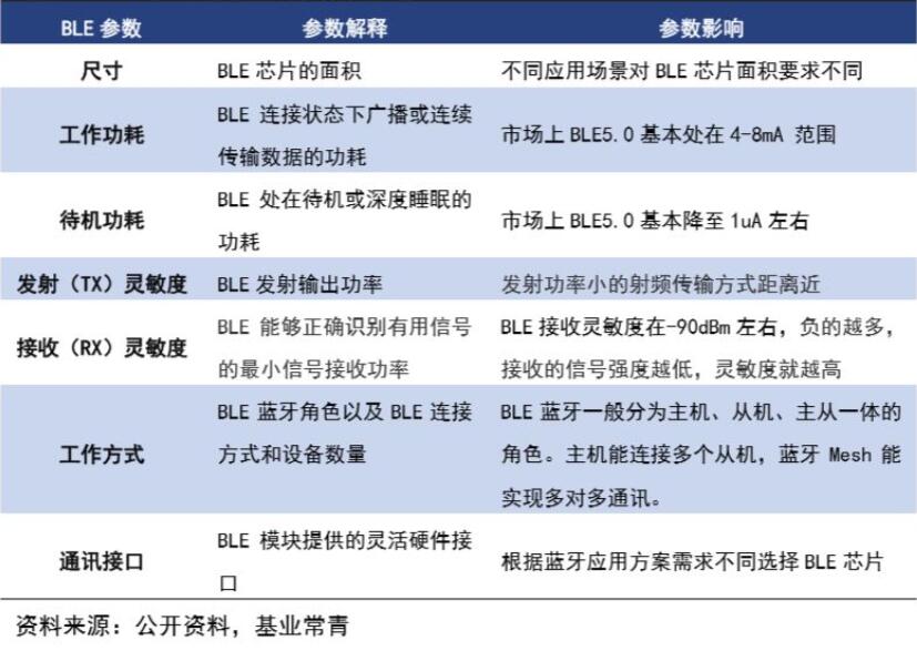 圖1 ble藍(lán)牙芯片主要參數(shù)解釋和影響