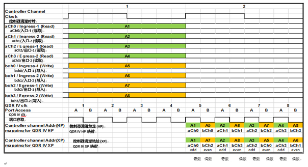 讀寫請求通過分階段來延遲與QDR-IV存儲器讀取延遲以及存儲控制器延遲的匹配。分階段設計也作為本地緩存累積延遲過程中的服務更新請求。在HP模式中,沒有統(tǒng)計/處理器更新地址限制通過四根通道中的任何一根。地址的發(fā)生可能是隨機的,并且無需給每根通道分配特定類型的地址。但由于在XP模式中存儲器的區(qū)塊結構和限制與其相關,因此通道0和1被分配到保存入口流數據的奇數地址位置,通道2和3被分配到保存出口流數據的偶數地址位置。這一獨特的安排可以預防可能在XP模式中發(fā)生的分塊限制位置。